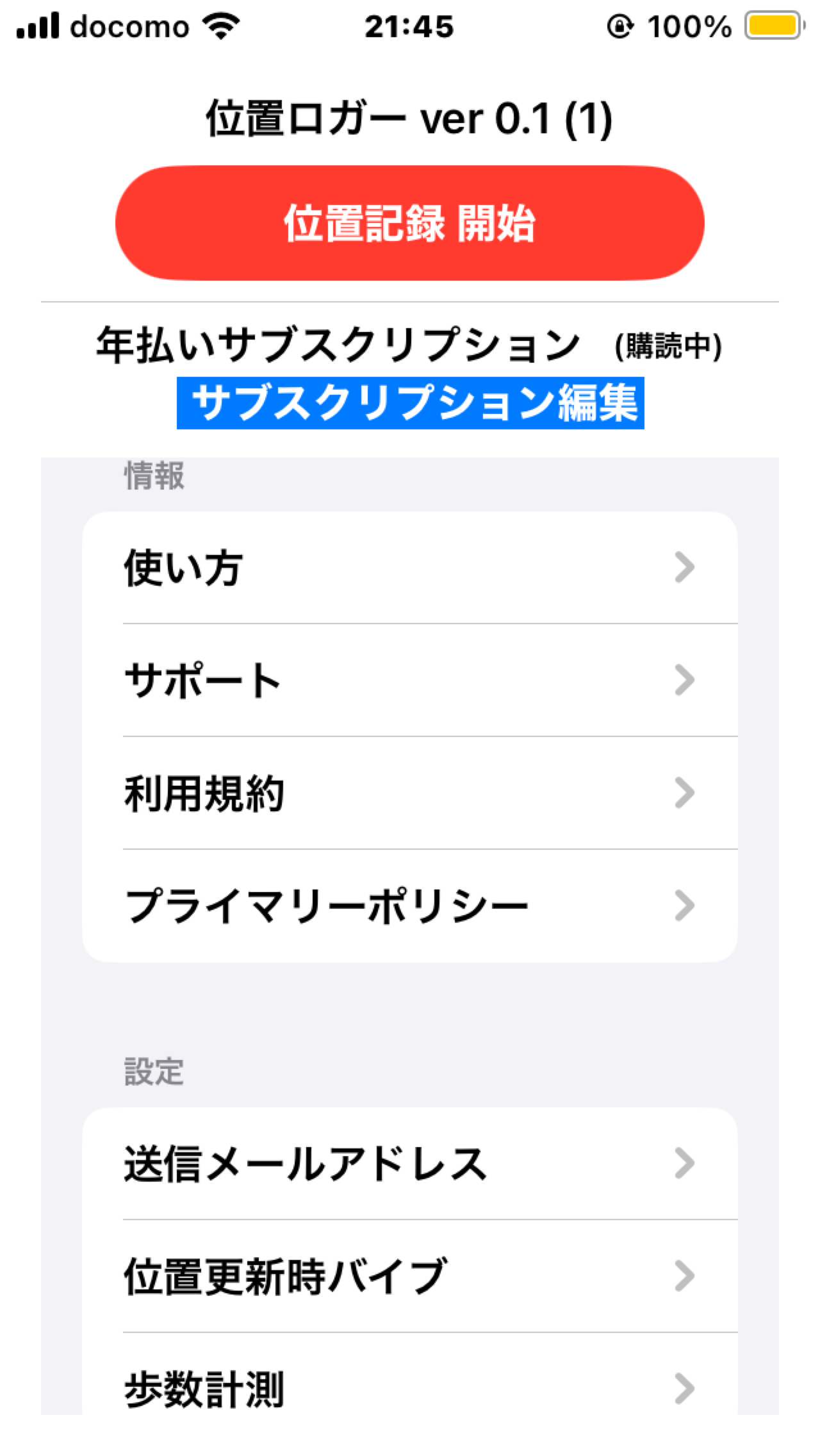 この「位置ロガー」はiPhone内臓のGPSデータを記録してkmlファイルに保存してメールの添付書類にしてパソコンなどに転送することができるソフトです。